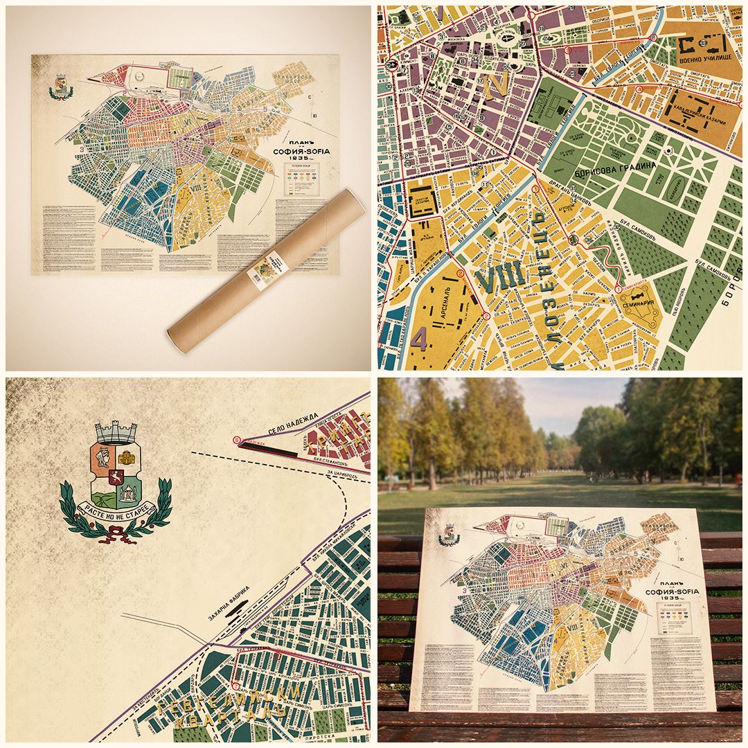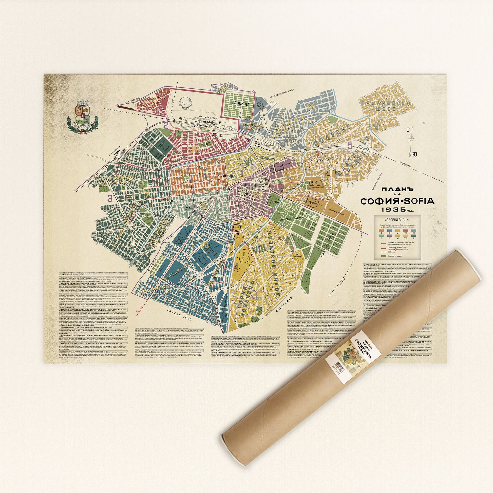 Преоткрий стара София с постер, изобразяващ градския ѝ план от 1935 г.