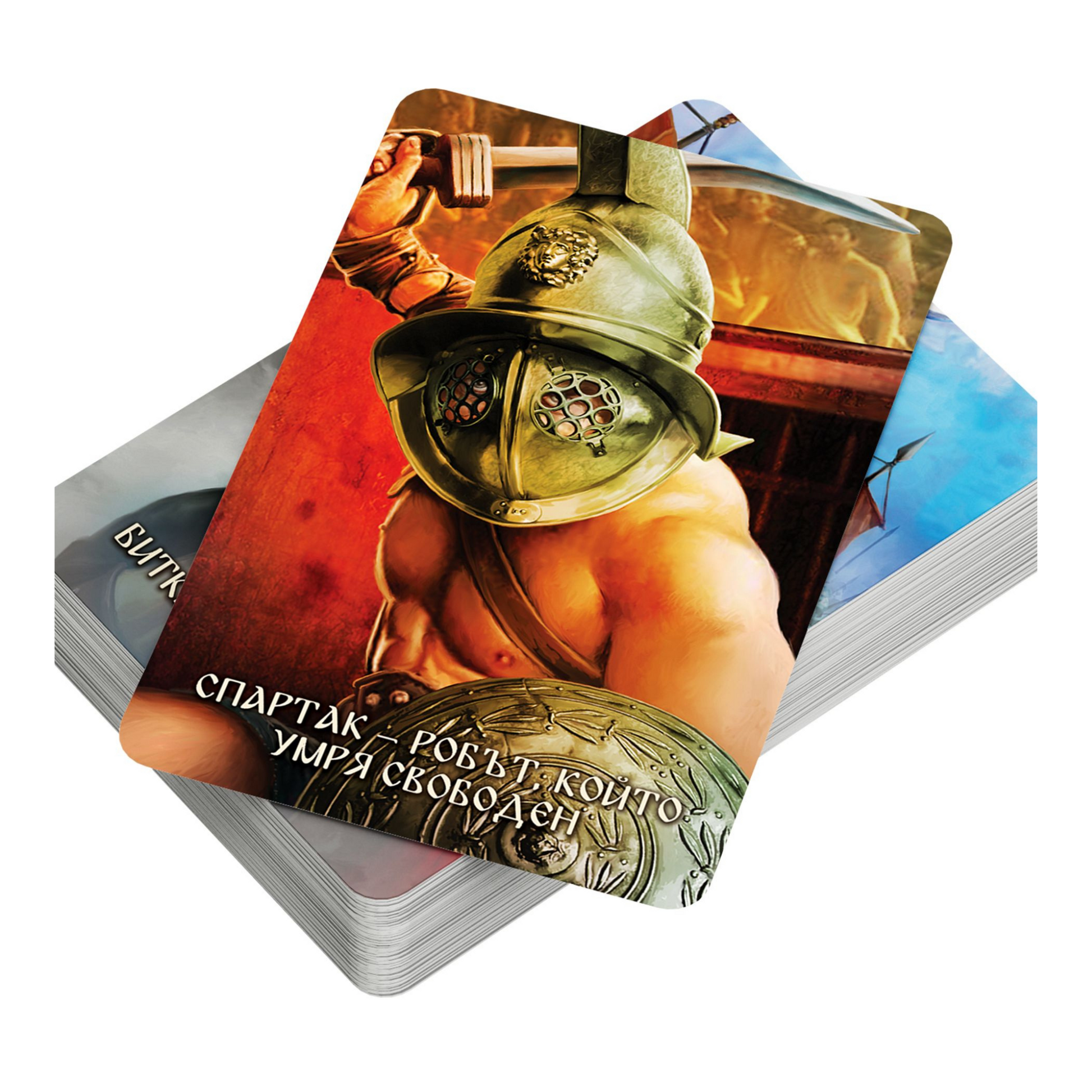 Верен помощник в историческите загадки ще Ви бъде и луксозната книга-приложение към играта, в която ще намерите обстойна информация за всяко събитие или личност, отбелязани на картите за игра.