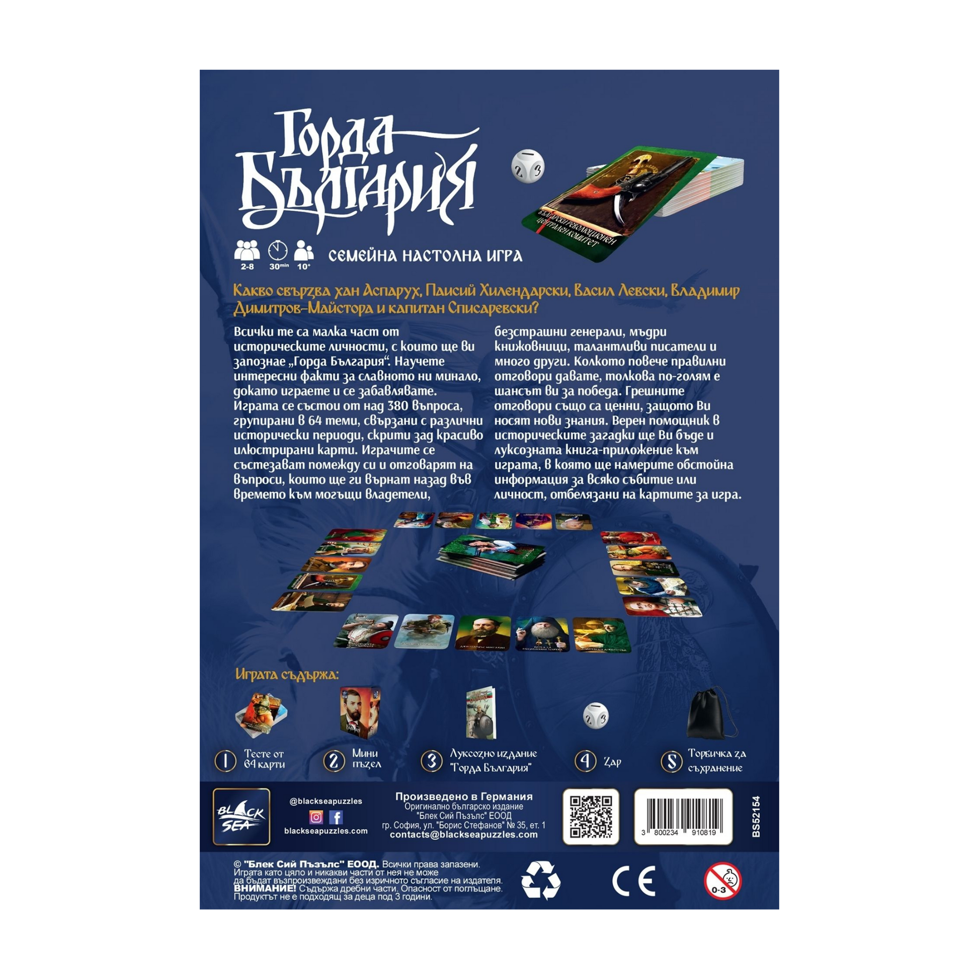 Какво свързва хан Аспарух, Паисий Хилендарски, Васил Левски, Владимир Димитров-Майстора и капитан Списаревски? Всички те са малка част от историческите личности, с които ще ви запознае „Горда България“. Научете интересни факти за славното ни минало, докато играете и се забавлявате.