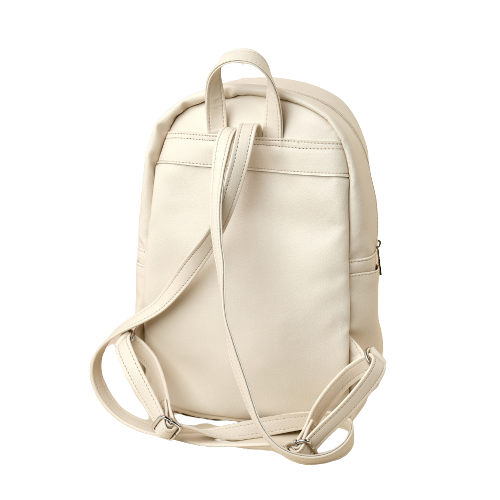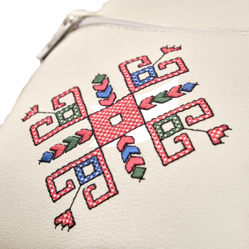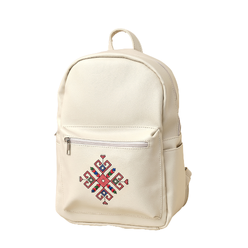 Кожена раница с бродирани шевици "Прелест" - бежова