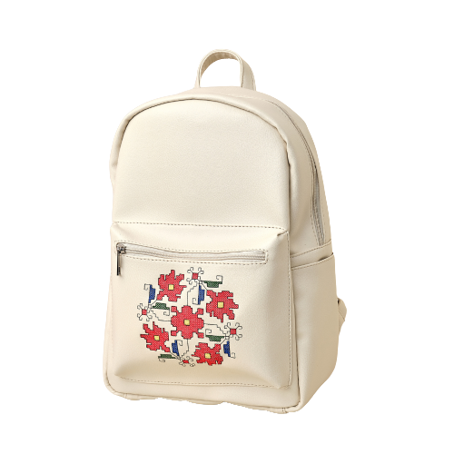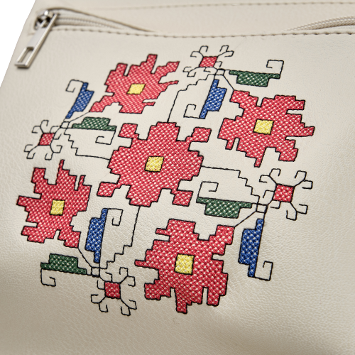 Кожена раница с бродирани шевици "Хармония" - бежова