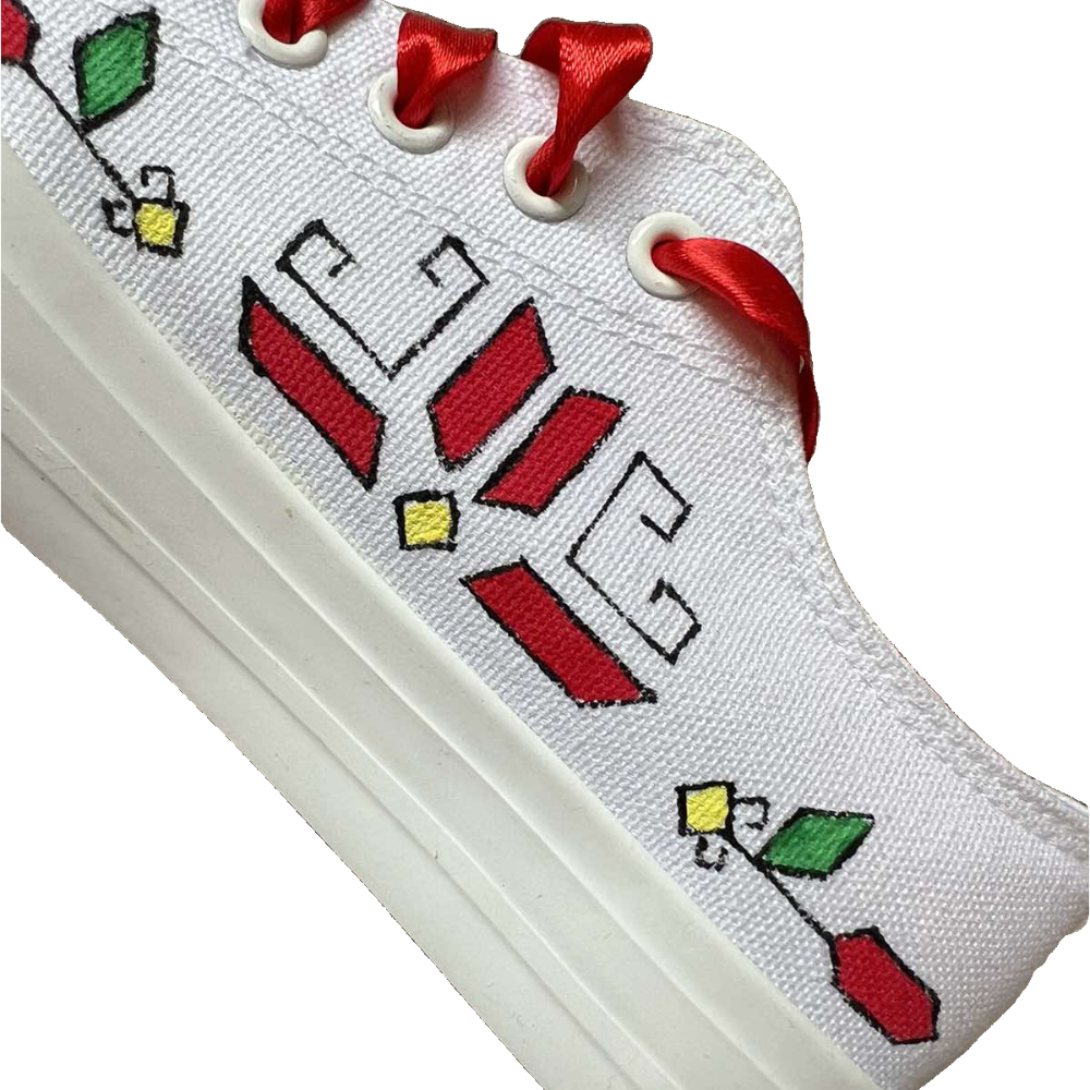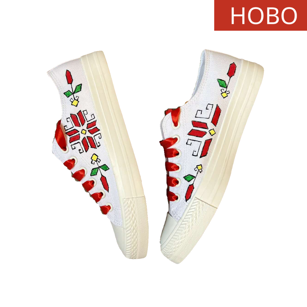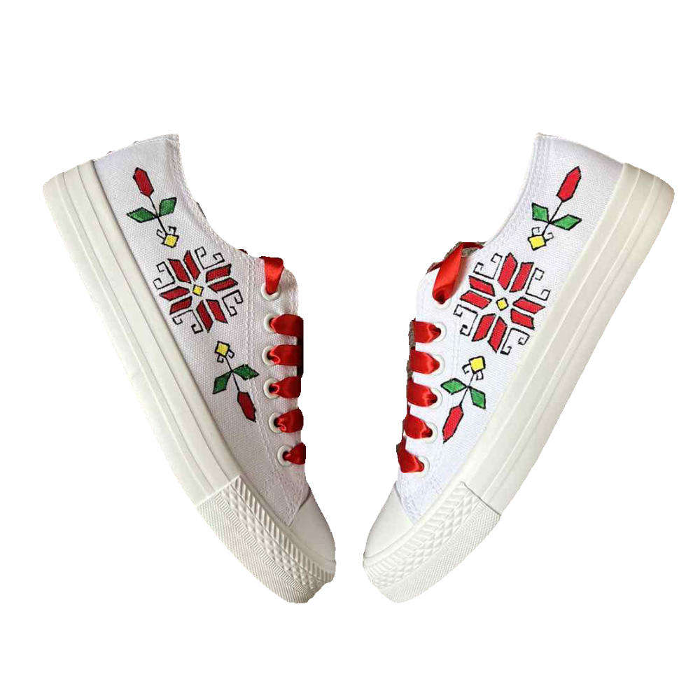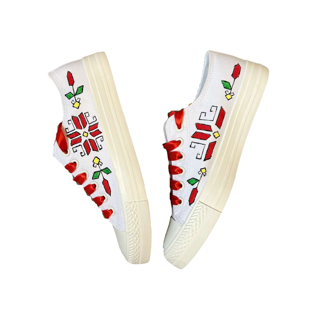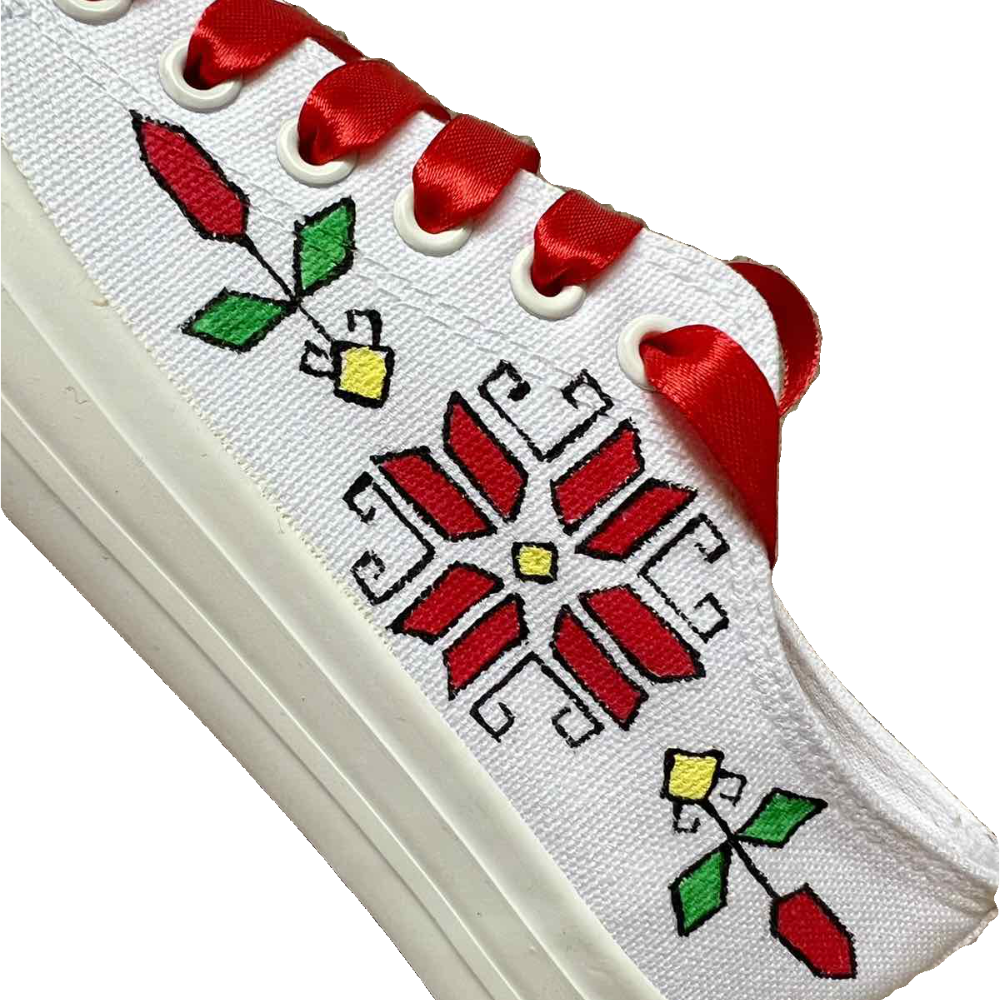 🎨 Ръчно рисувани, върху класически модел кецове, които осигуряват максимален комфорт на крака. С уникалния си дизайн са идеалното допълнение към всеки тоалет. Те са най-добрият избор както за ежедневна употреба, така и за специален случай. Задължителни за всяка модерна дама. А освен това, се носят с увереност, заради българското в себе си.