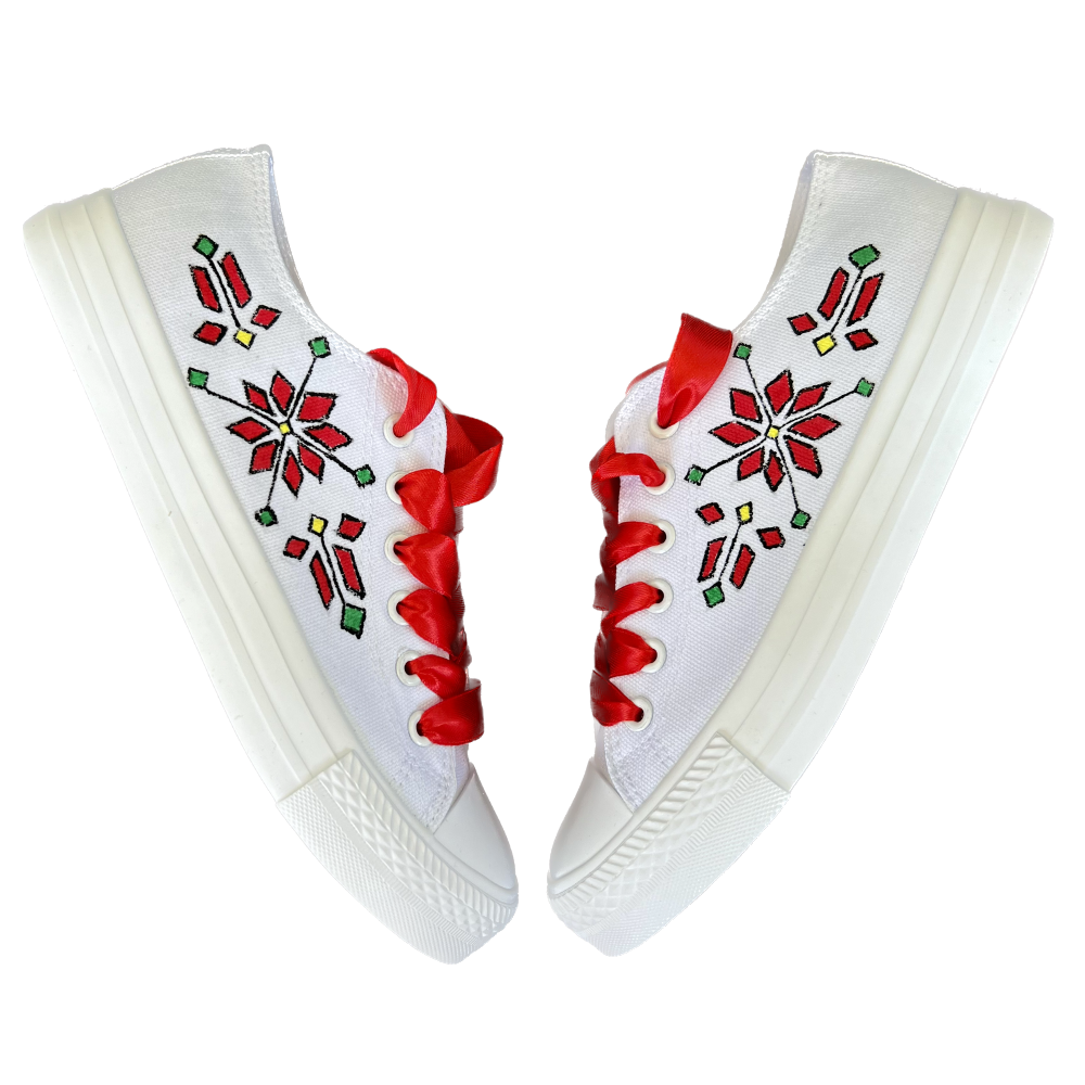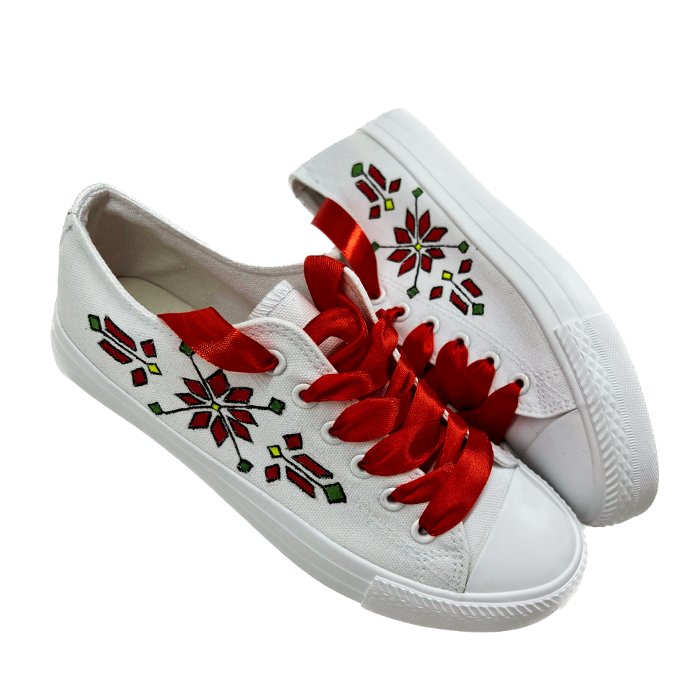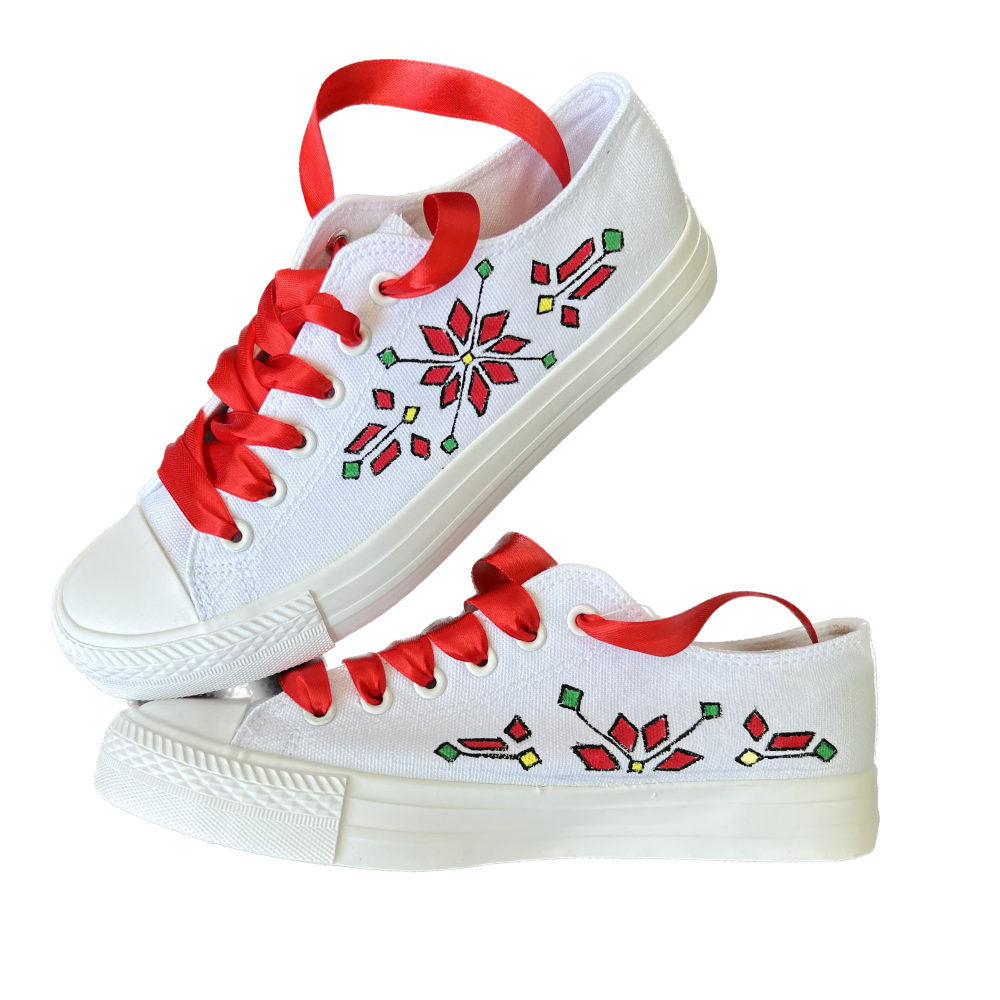 Ръчно рисувани, върху класически модел кецове, които осигуряват максимален комфорт на крака. С уникалния си дизайн са идеалното допълнение към всеки тоалет. Те са най-добрият избор както за ежедневна употреба, така и за специален случай. Задължителни за всяка модерна дама. А освен това, се носят с гордост, заради българското в себе си.