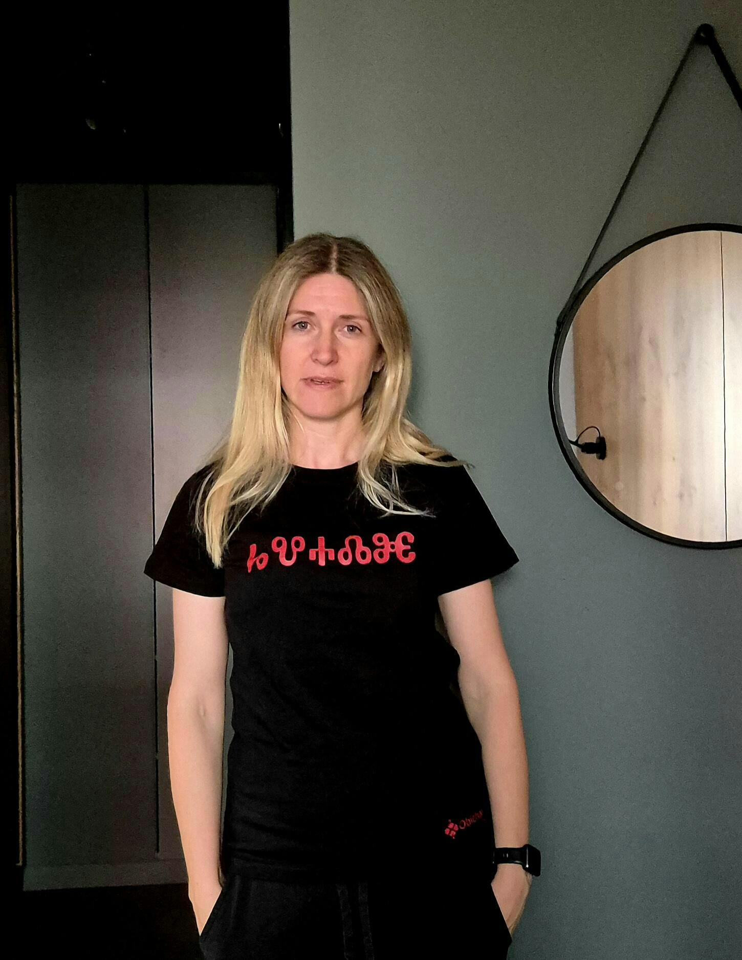 Препоръчваме пране на обратната страна при температура до 30°C, за да запазите цветовете и качеството на надписа. Не използвайте избелващи препарати и сушете на въздух.